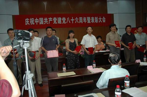 會(huì)議表彰了南通江山農(nóng)藥化工股份有限公司黨委等4個(gè)“五好”黨組織、朱浩明等25名優(yōu)秀黨務(wù)工作者及趙國(guó)彬等45名優(yōu)秀黨員,同時(shí)還向許友偉等4名    入黨60年的離休干部贈(zèng)送了紀(jì)念品。