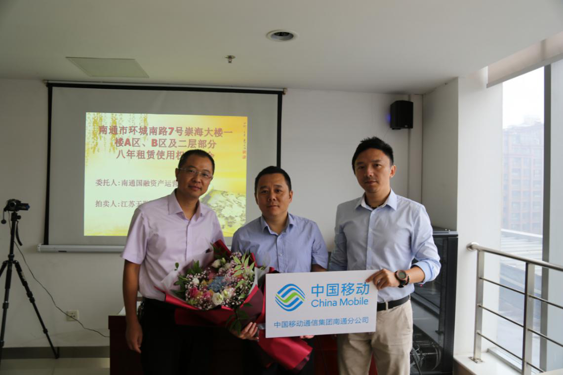 在宣讀了房屋租賃使用權(quán)拍賣(mài)的特別規(guī)定等文件并確認(rèn)各競(jìng)租人無(wú)異議后,現(xiàn)場(chǎng)監(jiān)拍人遞交了本場(chǎng)拍賣(mài)會(huì)的底價(jià)函。經(jīng)拍租,中國(guó)移動(dòng)通信集團(tuán)江蘇有限公司南通分公司代理人、張家港保稅區(qū)佑福珠寶貿(mào)易有限公司代理人分別拍中崇海大樓A區(qū)八年租賃使用權(quán)、B區(qū)八年租賃使用權(quán),并簽署了成交確認(rèn)書(shū),成交年租金合計(jì)達(dá)620萬(wàn)元,八年租金總額達(dá)4960萬(wàn)元。公司領(lǐng)導(dǎo)代表公司向房屋競(jìng)租人遞送了鮮花表達(dá)祝賀并合影留念。統(tǒng)一規(guī)劃,統(tǒng)一布局,統(tǒng)一招租,統(tǒng)一競(jìng)租,國(guó)融公司充分挖掘崇海大樓優(yōu)越的商業(yè)地段和濃厚的商業(yè)氛圍優(yōu)勢(shì),轉(zhuǎn)化為優(yōu)良、持久、高效的經(jīng)營(yíng)收益,實(shí)現(xiàn)了該處資產(chǎn)科學(xué)升值。公司將以崇海大樓成功招租的經(jīng)驗(yàn)為借鑒,繼續(xù)做好所管理國(guó)有資產(chǎn)的升級(jí)改造,切實(shí)履行好國(guó)有資產(chǎn)保值增值的職責(zé),推動(dòng)企業(yè)的高質(zhì)量發(fā)展。