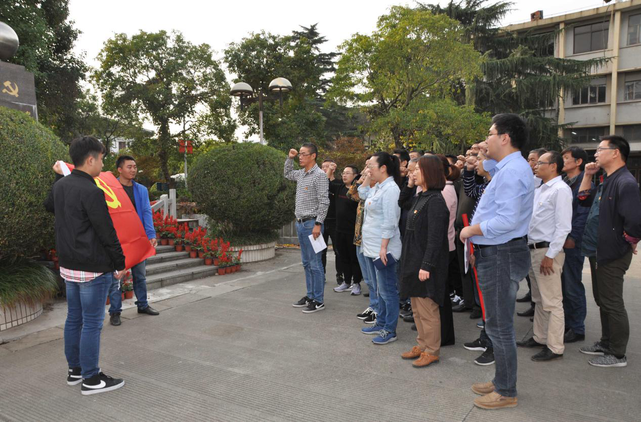 來到南通獨立支部紀(jì)念地碑前,在大生集團有限公司副董事長、總會計師漆穎斌的熱情接待下,紡織染公司全體黨員聆聽了黨辦潘宇關(guān)于獨立支部光榮歷史的講解,對其成立的過程,最初成員,以及偉大意義和作用都有了更為深刻地認(rèn)識和理解。作為南通最早的黨組織,中共南通獨立支部的成立點燃了江海大地第一簇革命星火,掀開了南通革命史上嶄新的一頁。 瞻仰紀(jì)念碑,紡織染黨委書記、董事長李志宏帶領(lǐng)全體黨員干部莊嚴(yán)地舉起右手,在中國共產(chǎn)黨南通支部紀(jì)念碑前,面對火紅的黨旗,重溫入黨誓詞,緬懷革命先輩光榮歷史,深刻感受他們在革命歲月里,不忘初心,牢記使命,創(chuàng)獨立支部、干經(jīng)天偉業(yè)的壯志豪情;感受他們?yōu)橹袊嗣裰\幸福,為中華民族謀復(fù)興的艱苦卓越歷程。