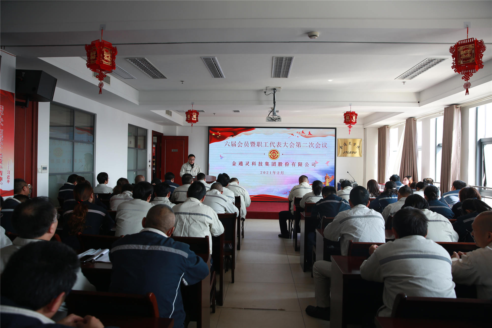 2月24日下午,金通靈科技集團股份有限公司工會六屆會員暨職工代表大會第二次會議在金通靈學院內召開,98名職工代表參與會議,金通靈主要領導、各分子公司主要負責人、職能部門領導應邀列席會議。