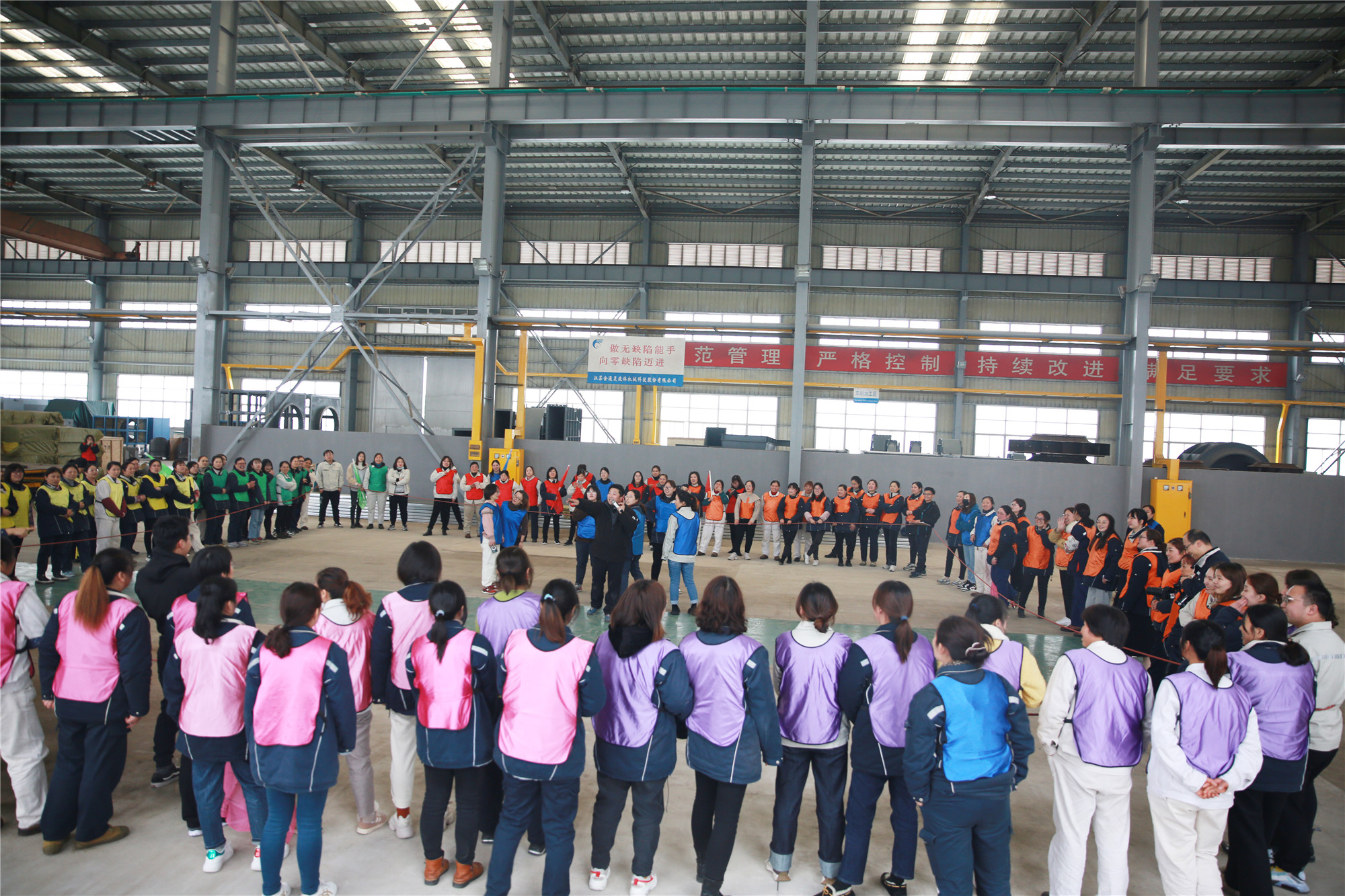 3月8日下午, 一百多名女職工歡聚2號車間,在教練的帶領(lǐng)下,分成了10個(gè)小組,按照要求分別設(shè)計(jì)了自己隊(duì)的隊(duì)名、隊(duì)徽、口號、隊(duì)歌,并依次展示了團(tuán)隊(duì)風(fēng)采。在充滿樂趣的熱身小游戲后,便開始了“坦克大戰(zhàn)”、“環(huán)游世界球”、“動力繩圈”等團(tuán)隊(duì)拓展項(xiàng)目。在彼此信任、相互溝通、集體協(xié)作的氛圍中,各小組成功完成了此次拓展任務(wù)。參加此次活動的廣大女職工們有長期伏案的科員,有奮戰(zhàn)一線的工人,也有集團(tuán)中高層領(lǐng)導(dǎo),在新組建的團(tuán)隊(duì)中,大家拋開身份,融入隊(duì)伍,在隊(duì)長的帶領(lǐng)下,克服困難,團(tuán)結(jié)一心,共同為隊(duì)伍加分增光。 此次拓展活動,既緩解了女職工們工作的疲憊和壓力,又增進(jìn)了同事間的友誼,增強(qiáng)了團(tuán)隊(duì)凝聚力,大家在娛樂中感受到團(tuán)隊(duì)的力量。集團(tuán)黨委副書記、工會主席李建兵給女工們送上節(jié)日的祝福,他表示,廣大女職工們在此次活動中充分展示了巾幗風(fēng)采,彰顯出金通靈女工隊(duì)伍的魅力,在今后的工作中,大家要時(shí)刻握緊手中的“動力繩”,勁往一處使,力往一處用,跟著團(tuán)隊(duì)的步調(diào),以奮發(fā)昂揚(yáng)的姿態(tài)繼續(xù)前行! |