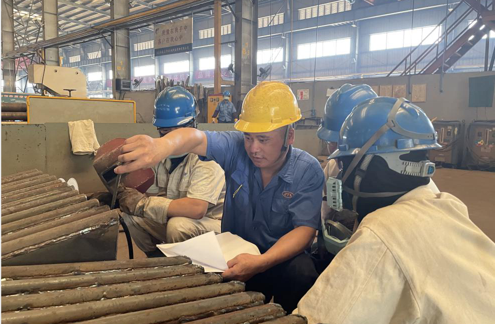 金通靈,一個有著深厚歷史底蘊的企業(yè),是孕育勞模的沃土,多年來,培養(yǎng)出3名省勞動模范,6名市勞動模范,1名區(qū)勞動模范,2018年6月,金通靈成立了勞模集群黨支部,充分發(fā)揮勞模示范效應(yīng),引領(lǐng)產(chǎn)業(yè)工人加入到創(chuàng)新驅(qū)動發(fā)展的行列,助力企業(yè)發(fā)展。尹芬興便是勞動模范中的代表人物,今年他被評為“江蘇省勞動模范”,年近五十的他已在金通靈走過26年的青春歲月。當(dāng)年尹芬興從安徽老家出來時,他還不到20歲,憑著一腔熱血和對未來美好的憧憬來到南通工作。他把勞動當(dāng)做樂趣,跟同事們交流經(jīng)驗、切磋手藝,共同解決工作中遇到的難題是他工作的常態(tài)。26年來,他不斷摸索,不斷學(xué)習(xí),不斷提升,積極發(fā)揮勞模示范帶頭作用,帶領(lǐng)團隊成員積極投身到創(chuàng)新工作中,多年來攻克多個技術(shù)難題。其中“兩節(jié)身”前盤的成型技術(shù),低溫升蒸汽壓縮機組合成型免加工藝加強圈技術(shù),干熄焦煤氣風(fēng)機制作工藝改進等創(chuàng)新成果不僅節(jié)約了大量生產(chǎn)成本、縮短生產(chǎn)時間,更保證了產(chǎn)品質(zhì)量,為公司創(chuàng)造了巨大經(jīng)濟效益。如今的尹芬興是葉輪成型組一組組長,每日負(fù)責(zé)的事情繁雜,他卻總能一絲不茍地完成,臟活、累活搶著干,白色工作服印著他斑斑勞動的印記,也承載了他一路奮斗的榮光。26年來,他始終把“愛一行、干一行、專一行”作為工作的信條,以此激勵自己在工作崗位上奮發(fā)成才。就是憑著這樣的信念,他在一線崗位上堅守了二十余年,用堅持堅毅的姿態(tài)詮釋著勞模精神,讓勞模精神發(fā)光發(fā)熱。今年,尹芬興光榮地加入中國共產(chǎn)黨,高舉右拳,在黨旗下莊嚴(yán)宣誓,他黝黑發(fā)亮的面龐上印刻著堅定的信仰,從此,懷揣著共產(chǎn)黨人的初心使命,他又踏上了新的征途。