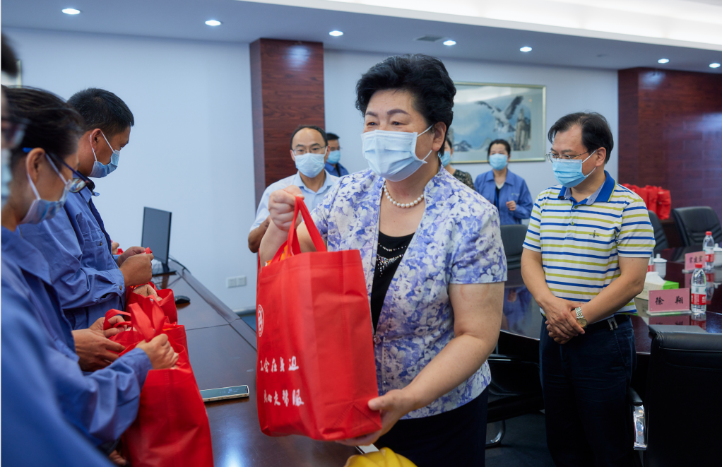 炎炎夏日,酷暑難耐。為進一步加強企業(yè)基層員工疫情防控意識,更好地保障一線職工群眾在高溫下正常生活,8月10日下午,市人大常委會副主任、總工會主席葛玉琴,市總工會黨組書記、副主席葛志娟到江天公司指導(dǎo)疫情防控工作,并看望慰問一線工作者。市國資委黨委副書記、副主任宋建宏,產(chǎn)控集團黨委副書記、副董事長、總經(jīng)理顧建國,黨委副書記、工會主席成剛等領(lǐng)導(dǎo)陪同。