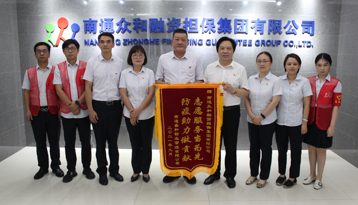 9月6日下午,南通盛和物業(yè)有限公司黨支部書記兼總經(jīng)理劉曉軍、副總經(jīng)理高曉蓉一行向眾和擔(dān)保送來了印有“志愿服務(wù)當(dāng)為先 防疫助力做貢獻”字樣的錦旗,誠摯感謝眾和擔(dān)保在盛和物業(yè)駐啟瑞廣場防疫工作人手緊張的關(guān)鍵時期,迅速組建了一支40名青年黨員、業(yè)務(wù)骨干構(gòu)成的“兩在兩同 同心抗疫”志愿者服務(wù)隊。他們利用工作之余,起早貪黑,放棄午休,不辭辛苦,堅守在防疫一線。從測溫驗碼到秩序維護,從交通疏導(dǎo)到卡口管理,哪里需要就到哪里,為啟瑞物業(yè)防疫工作作出了積極貢獻,也得到了啟瑞廣場業(yè)主的點贊,充分彰顯了國有企業(yè)責(zé)任擔(dān)當(dāng)。