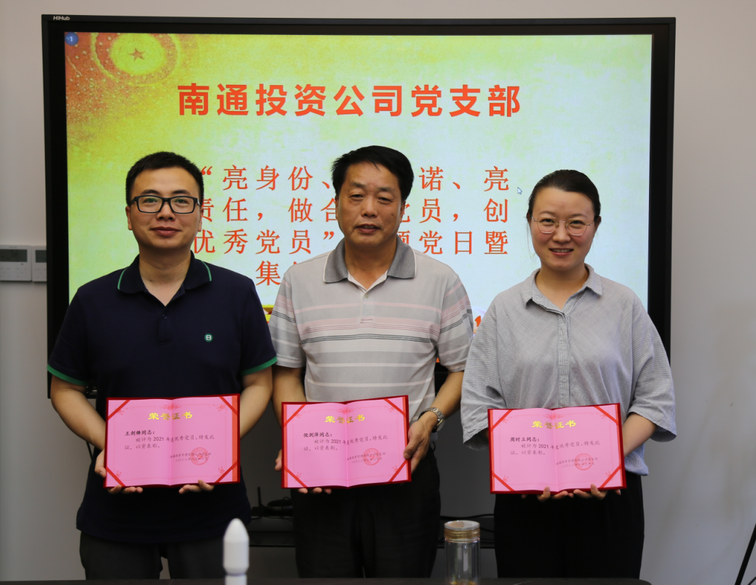 2022年7月1日是中國共產(chǎn)黨誕生101周年生日,下午南通投管全體黨員召開支部黨員大會,開展“亮身份、亮承諾、亮責(zé)任,做合格黨員,創(chuàng)優(yōu)秀黨員”主題黨日暨集體政治生日,支部為每位黨員精心準(zhǔn)備了一份政治生日賀卡,賀卡上寫明本次活動主題,并分別為每個黨員填寫了黨齡;會上支部表彰了3名2021年度優(yōu)秀黨員;履行接受中共預(yù)備黨員的發(fā)展與表決程序,一致同意吸收2名同志成為中共預(yù)備黨員,黨員們結(jié)合黨員責(zé)任區(qū)及辦實事等內(nèi)容,在五彩剪紙上撰寫服務(wù)承諾用語,貼在公司員工寄語墻上。