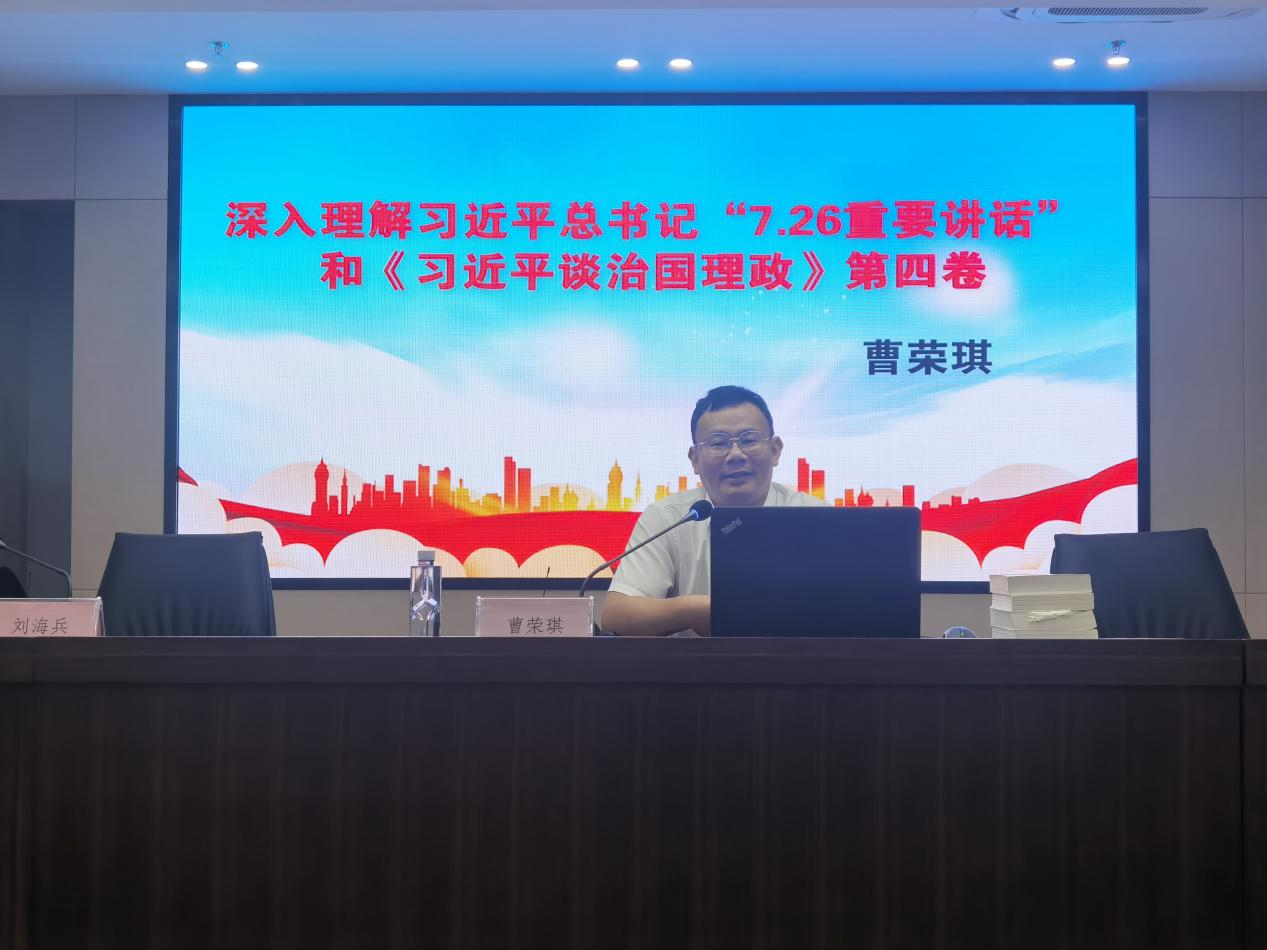 8月30日上午,國融公司召開專題學(xué)習(xí)會(huì)暨主題黨日活動(dòng),學(xué)習(xí)習(xí)近平總書記“7.26重要講話”和《習(xí)近平談治國理政》第四卷,邀請(qǐng)南通市通州區(qū)委宣傳部副部長(zhǎng)、新聞出版局局長(zhǎng)曹榮琪作專題授課。學(xué)習(xí)活動(dòng)由公司黨委書記、董事長(zhǎng)、總經(jīng)理劉海兵主持,全體員工參加了此次學(xué)習(xí)。