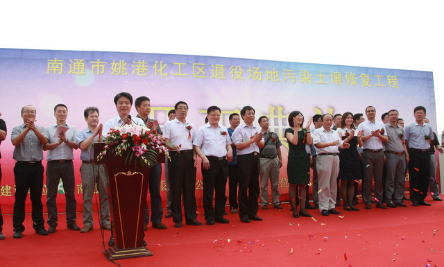 2013年8月30日上午9點18分,政府重視、民眾關(guān)心的南通市姚港化工區(qū)退役場地污染土壤修復(fù)工程開工儀式在姚港路35號舉行。本次工程修復(fù)范圍包括原南通農(nóng)藥廠、樹脂廠、染化廠生產(chǎn)廠區(qū)及姚港河部分河段,修復(fù)土地面積約550畝,修復(fù)土方量28萬立方米。根據(jù)前期修復(fù)調(diào)查評估,修復(fù)地塊的污染物主要以揮發(fā)、半揮發(fā)農(nóng)藥、有機污染物為主,修復(fù)工作將使用熱解析、化學氧化等多種成熟技術(shù)。修復(fù)工期一年半,修復(fù)達標后再進行二次開發(fā)。 本次修復(fù)工程是南通歷史上最大規(guī)模的土壤修復(fù)項目,從前期的土壤調(diào)查評估、確定修復(fù)目標值,到實施招投標、確定施工單位,前后共歷時三年多。市委市政府對土壤修復(fù)工作高度重視,在綜合部門的幫助支持下,工作組創(chuàng)造性地摸索出符合南通土壤修復(fù)工作要求的做法,如研究確定了項目推進主體、項目實施平臺、修復(fù)治理目標、“三+一”監(jiān)管模式等。 通過修復(fù),“姚港化工區(qū)”這一名詞將成為歷史,沉寂了近半個世紀受污染的土壤將得到凈化,在未來的規(guī)劃中,該區(qū)域?qū)⒁愿邔幼≌⒕G地公園、生態(tài)河等形式迎來她的第二次生命。